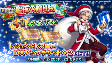 雑記今年のクリスマスプレゼントは?【ドラクエ10】 ライバルズのクリスマスプレゼント 明日(25日)の23:59までにINすると レジェンドレアが当たる パックチケットが2枚貰えます。 休止している人も これだけは貰っておくといいかも~ ちなみに、わたしはホメロスとホミロン軍曹でした。 ...2019.12.24雑記