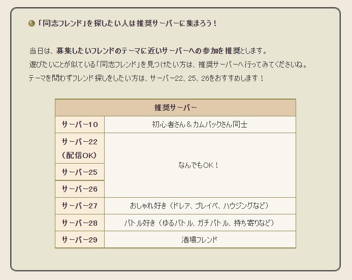これだけ長い期間で運営されているとコミュニティも固定化されフレンドを作るきっかけってなかなかないからね。新規や復帰の方には嬉しい企画だと思います。