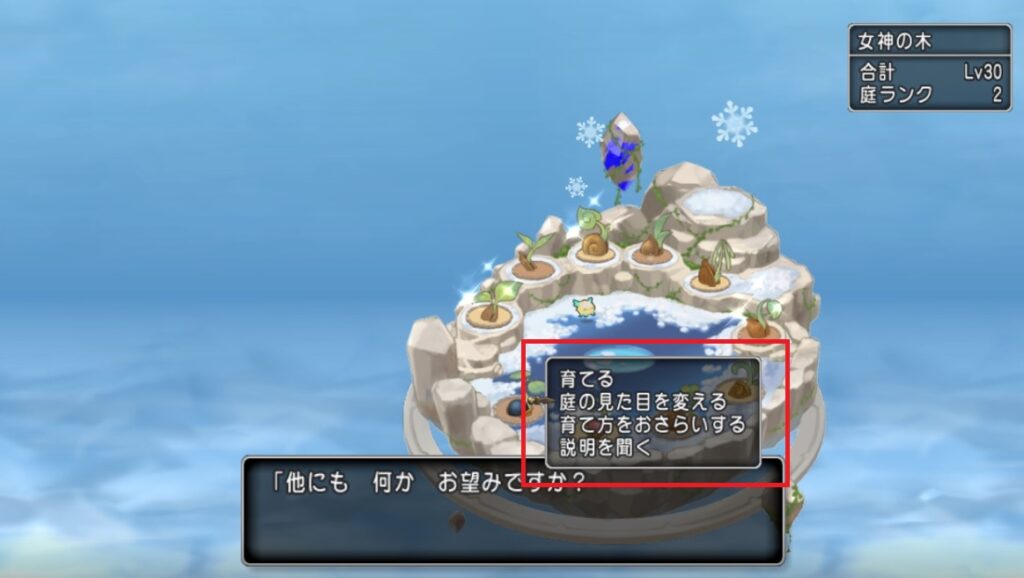 女神の木から離れる時に「やめる」のような選択肢がありません。