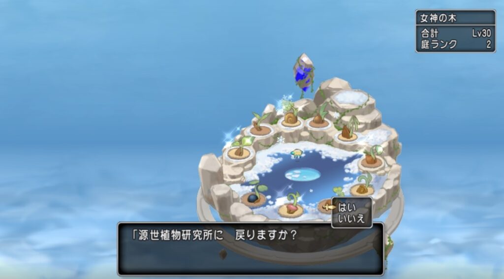 この画面になって、ここで「はい」選ぶと元の場所に戻る事が出来る。逆にキャンセルボタンを押すと手前の画面に戻ってしまい、キャンセルボタンを連打すると女神の木の画面でループ