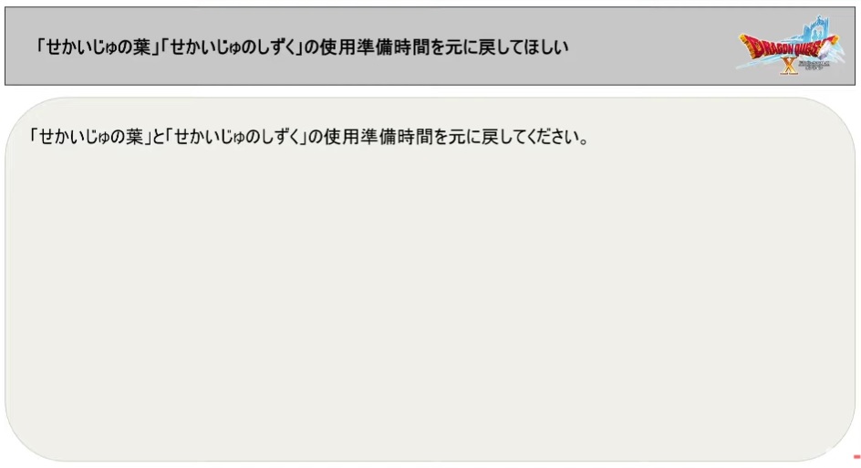 昨晩は酔っぱらって早めに寝てしまいリアルタイムではみれなかったのですが、先ほどアーカイブで超DQXTVを見てきました。まあ、予想はしてたけど葉っぱと雫は戻す予定はないようです!