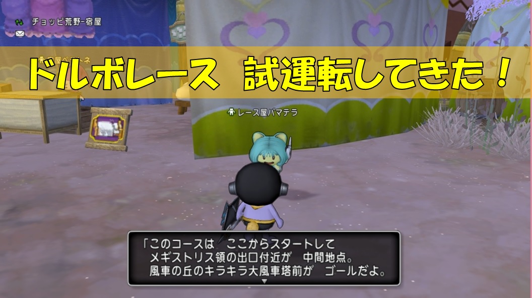 第3回目となるドルボードレースグランプリの会場はプクランド大陸です。チョッピ荒野から風車塔までを駆け抜けるコースになってます。
