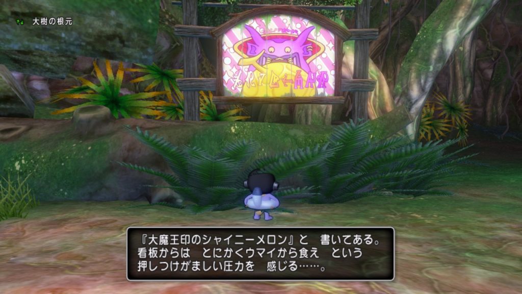 大魔王印のシャイニーメロンという謎フレーズもそうですが、看板の大魔王の顔w とてもじゃないけど、魔界を統一した大魔王の顔じゃないよね。バージョン5のストーリー中でも大魔王マデサゴーラの話は出てくるんだけど、さらに大魔王としての威厳みたいなものが無くなってしまったなと。