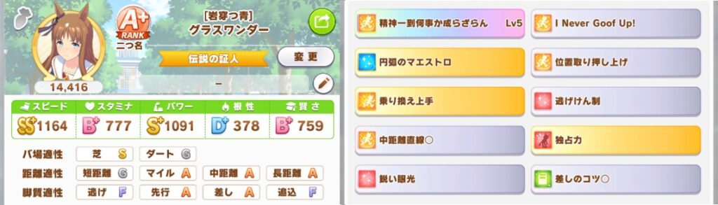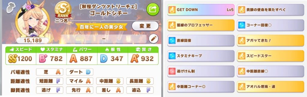 ゴールドシチー自体が好きなので頑張って育成しました。