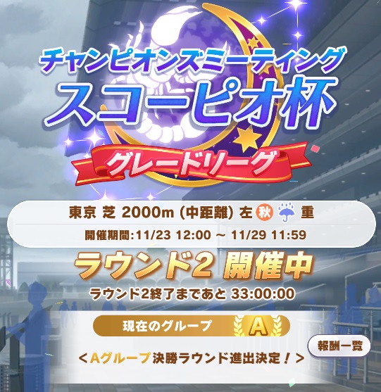 全国の猛者達と育成したウマ娘を競わせるコンテンツで基本的には課金している人の方が有利。予選から決勝にかけて報酬がかなりおいしいので、自信がなくともエントリーだけは済ませて参戦しておくのがよい。