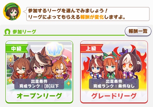 育成に自信がない人はオープンリーグという、ウマ娘の育成ランクを限定したモードも選べる。しかし、こちらのリーグもギリギリに育成を調整してくるプロがいるので油断は禁物。