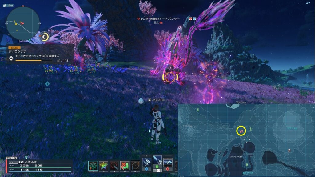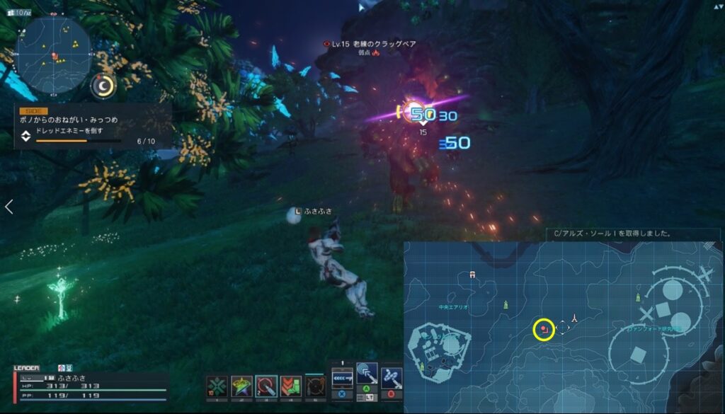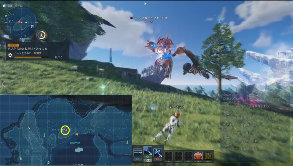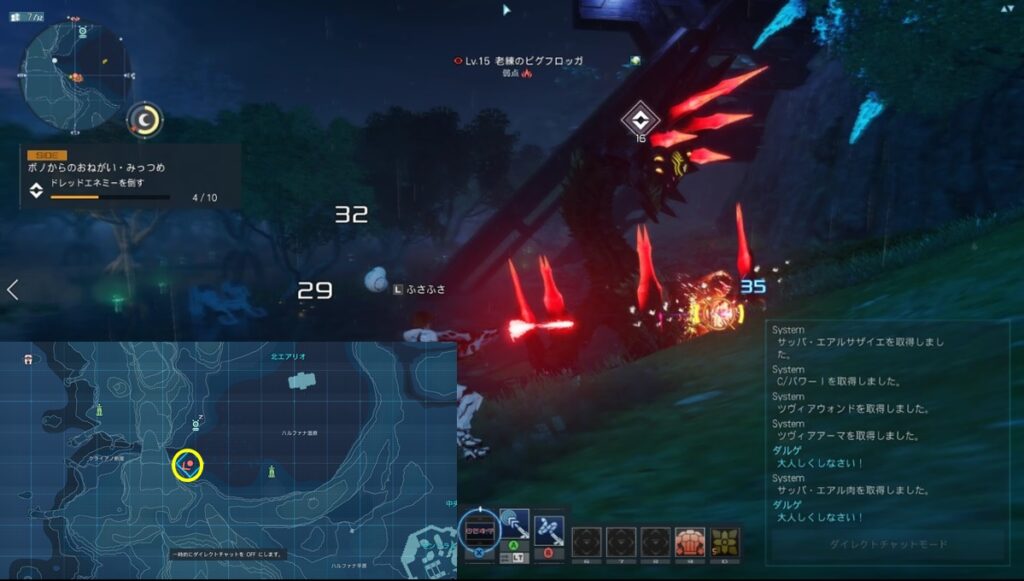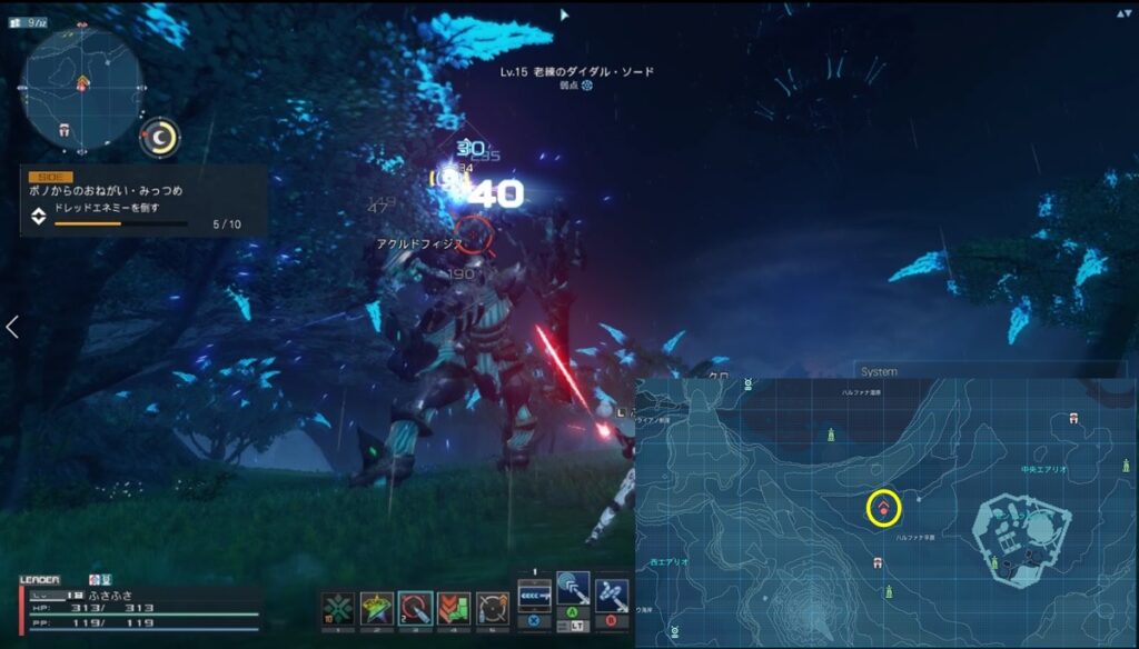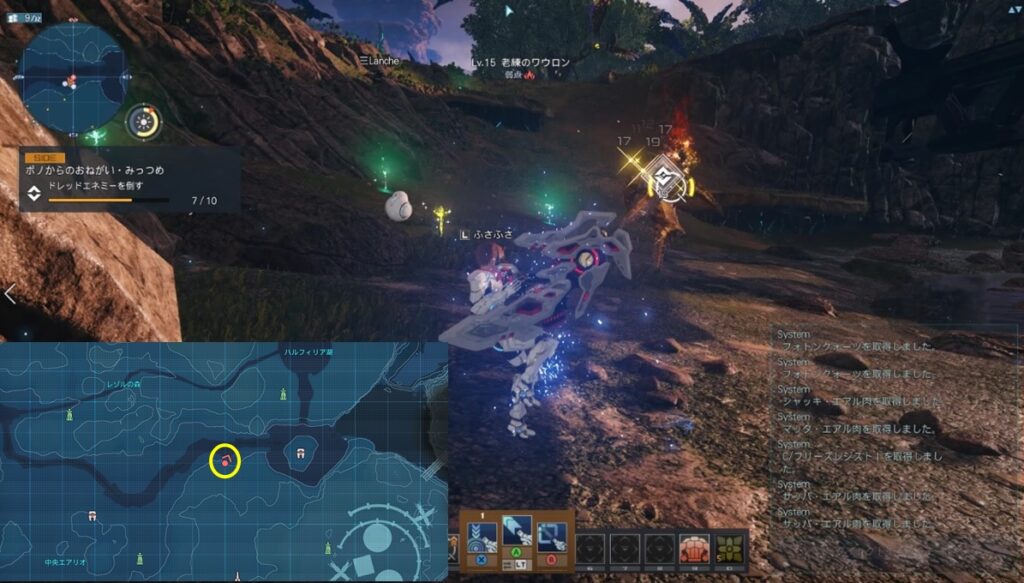 老練系はとにかくHPが高くソロで挑戦するとかなり大変です。まあ、倒せなくはないので実力試しがてらチャンレンジしてみるのもいいかも。わたしがやった時は、同じようにクエスト消化目当てで回っているような人がいて、見知らぬ野良のプレイヤーと一緒に討伐していました。