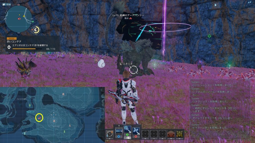 ゲーム内でも説明がありますが、ドレッドエネミーとは【老練の】という呼称がついているエネミーのこと。マップの様々なところに存在し、通常よりもHPなどを中心にステータスが高く強い個体となっている。